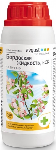 Бордоская жидкость - известный препарат в новой жидкой форме для защиты плодовых и ягодных культур от болезней.Действующее вещество:водно-суспензионный концентрат 172 г/л меди сульфата трёхосновного