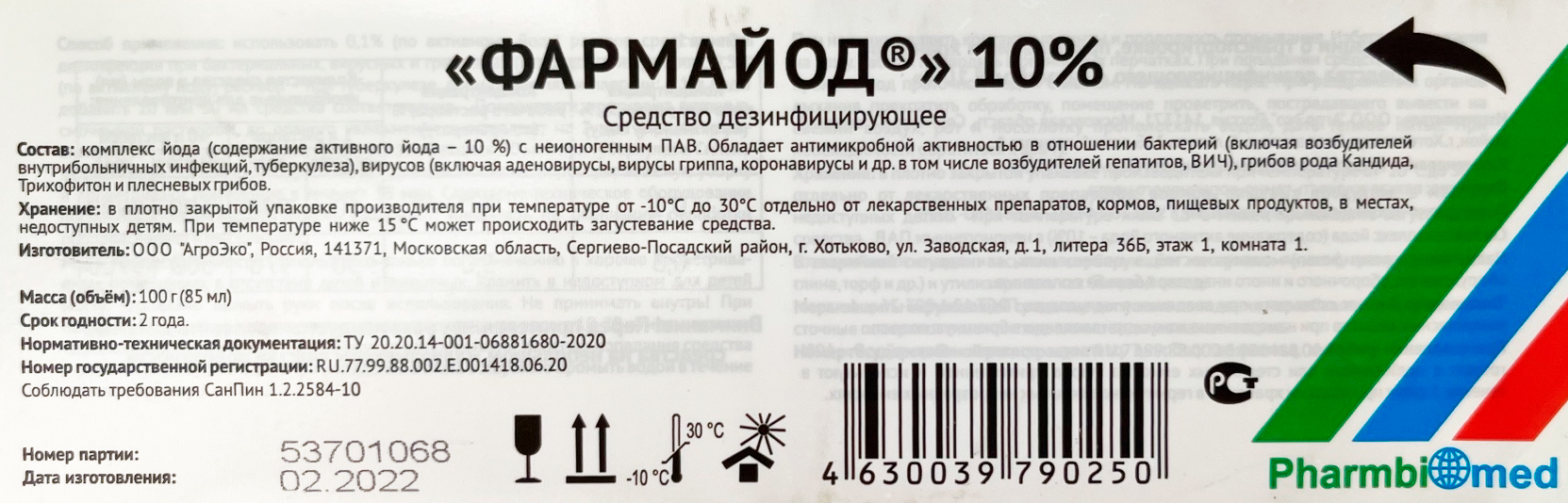 Нельзя не отметить и экологичность данного дезинфектанта. Он не содержит вредных для окружающей среды веществ и не оставляет токсичных остатков на поверхности растений. Благодаря этому, Фармайод 10 % можно использовать без опасения для здоровья человека и животных.