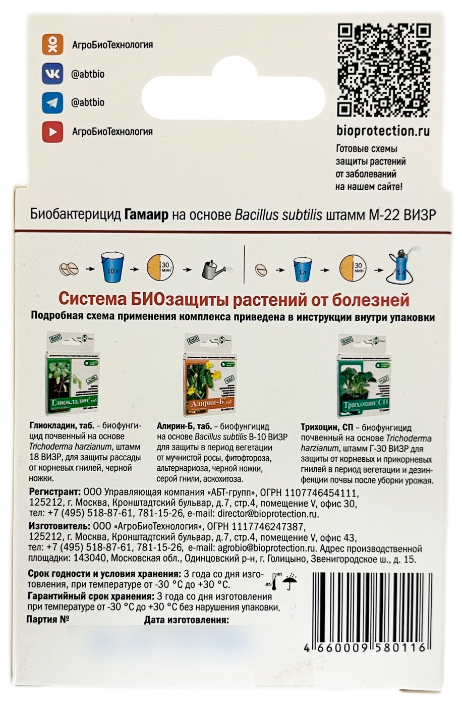 ГАМАИР, 20 таблеток (на 1-2 сотки)Биобактерицид. Для овощных, плодово-ягодных и цветочных культур. Против бактериозов, пятнистостей, монолиоза, парши, бактериального рака.