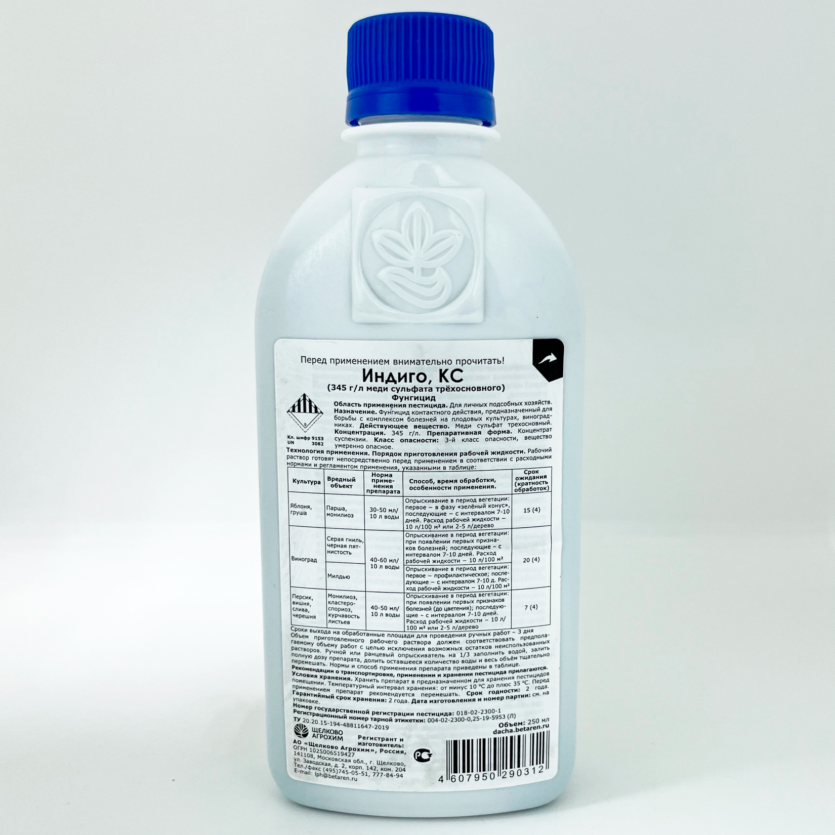 Индиго, КС 250мл для плодово-ягодных кульутрКонтактный фунгицид профилактического действия для базовой защиты садов, виноградников и овощных культур от комплекса болезней.