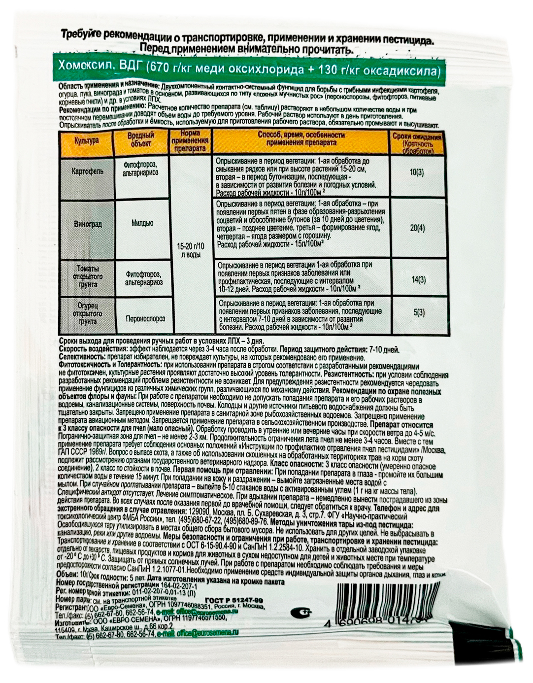 ХОМОКСИЛ 10гОт комплекса болезней. Гарантированный результат для борьбы с фитофорозом, пероноспорозом, мильдью, корневойгнилью на овощных и плодовых культурах.