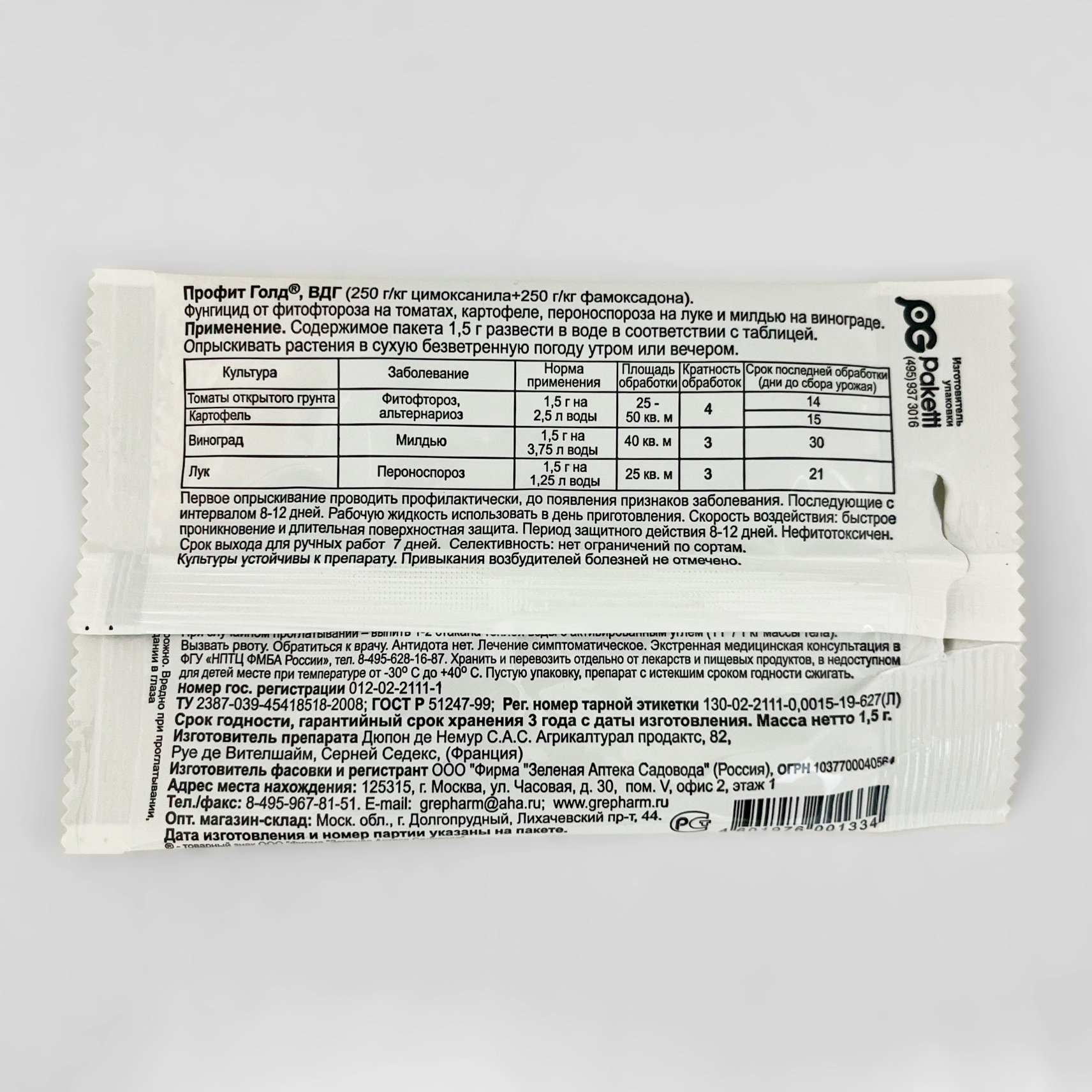 ПРОФИТ ГОЛД 1,5гПротив ФИТофтороза на 1-3,5л воды на 25м2.