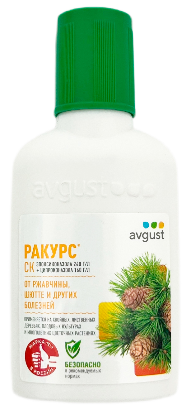 РАКУРС, СК 48млОт ржавчины, шютте и других болезней. Применяется на хвойных, лиственных деревьях, плодовых культурах и многолетних цветочных растениях.