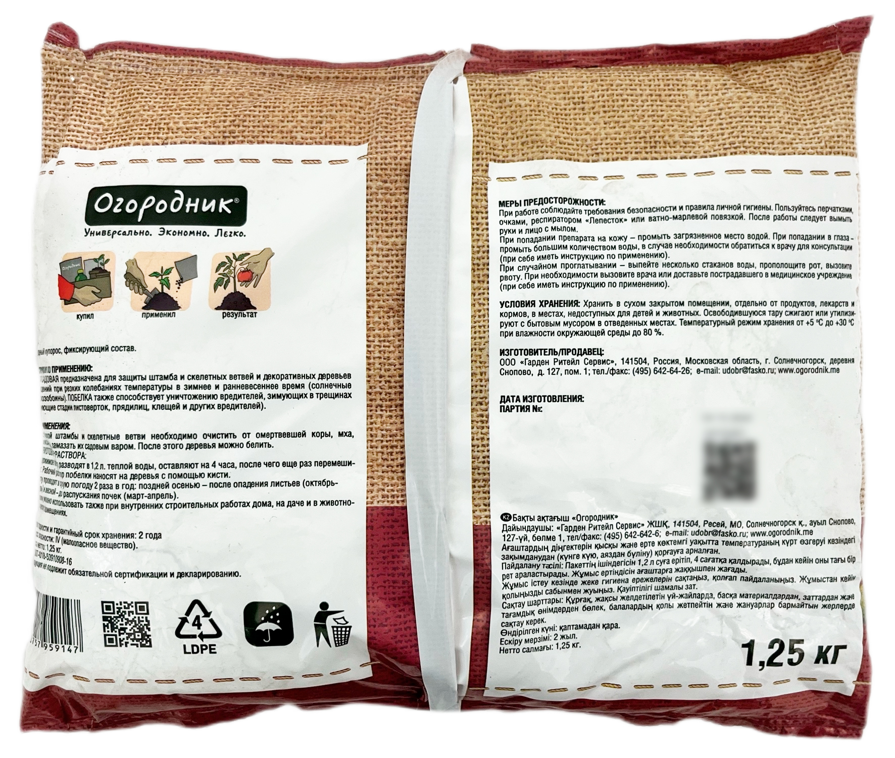 Садовая побелка Садовник 1,25кг сухая Огородник