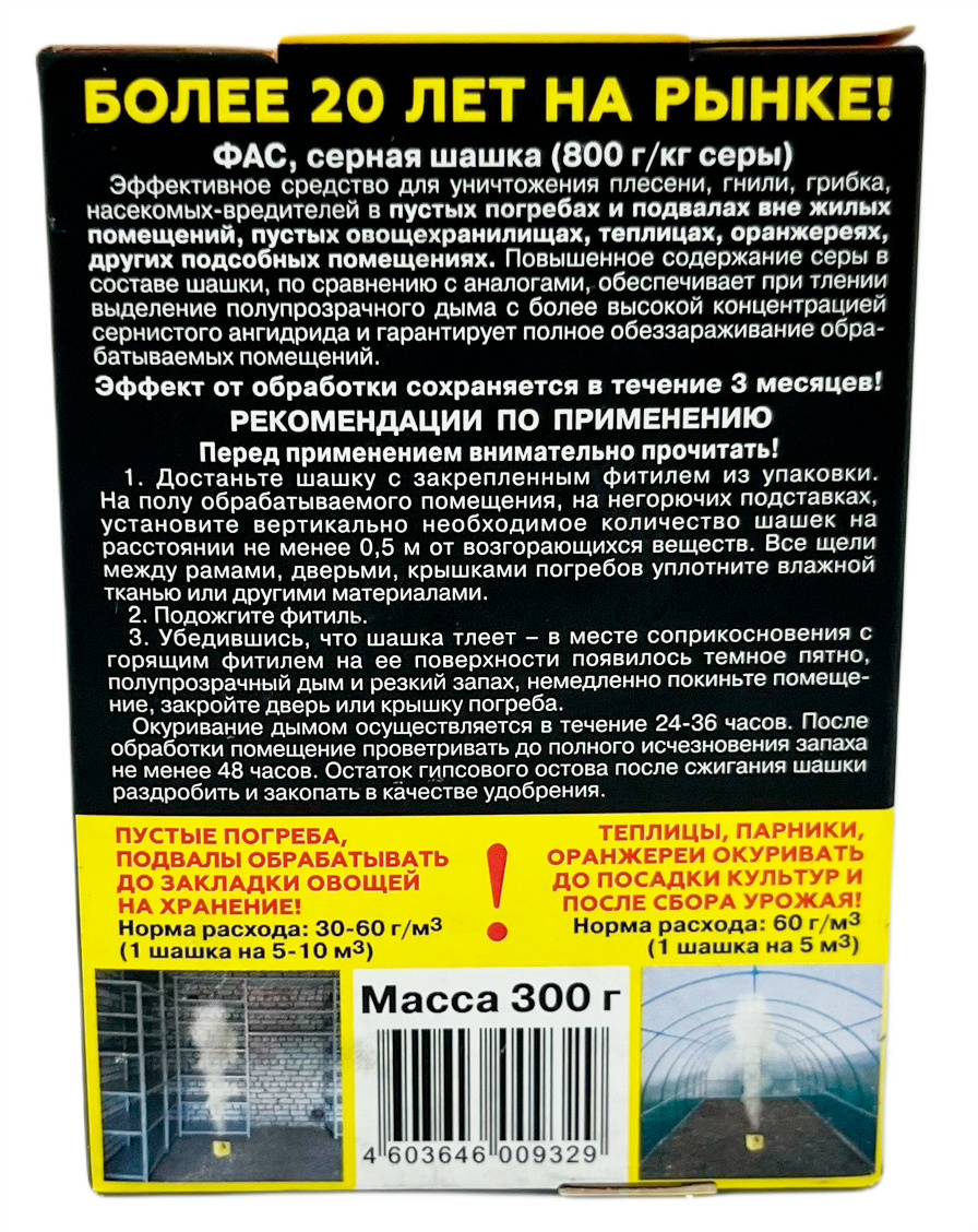 Серная шашка ФАС ПРЕМИУМ 300гНатуральная защита погребов, подвалов, теплиц.