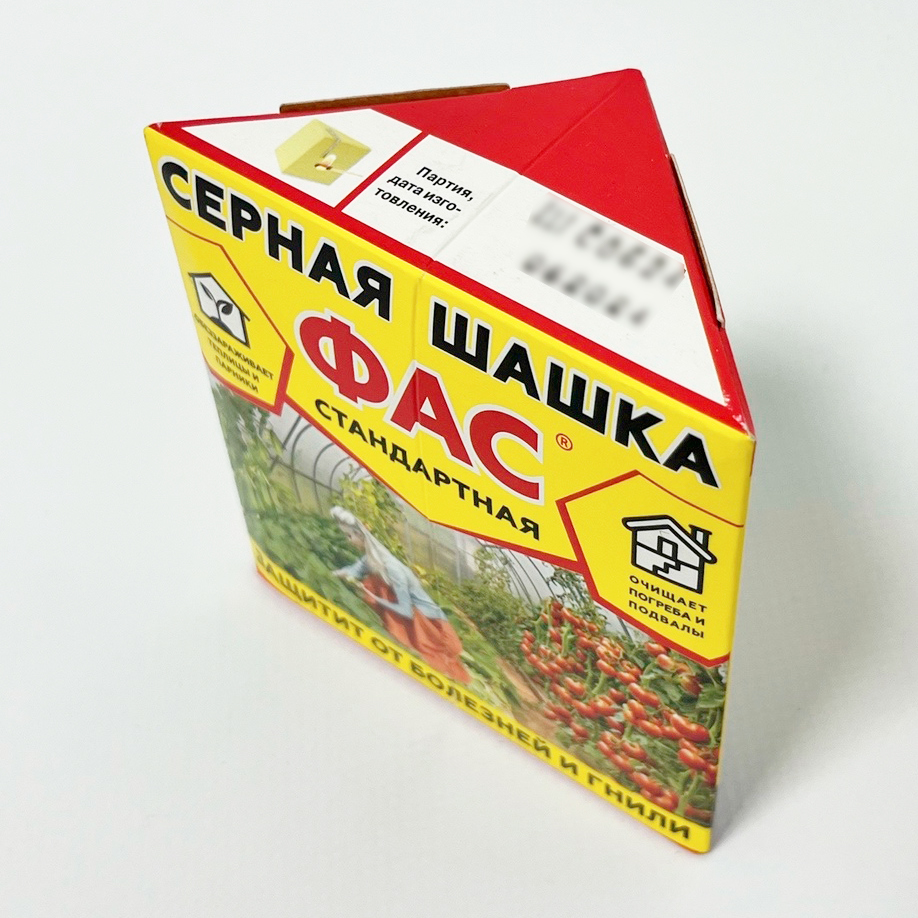 Серная шашка ФАС стандартная 300гСовременное средство серная шашка ФАС для фумигационной обработки пустых погребов и подвалов (вне жилых помещений), парников, теплиц и оранжерей, которая уничтожает: