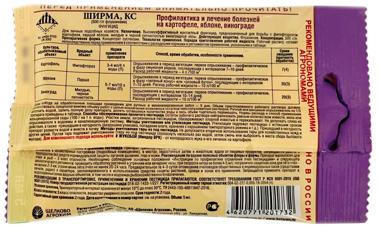 ШИРПА, КС 5млПрофилактика и лечение болезней на картофеле, яблоне, винограде.