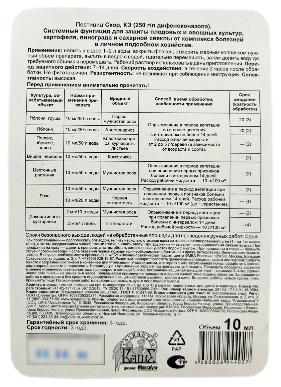 Системный фунгицид для защиты плодовых и овощных культур, картофеля, винограда, и сахарной свеклы от комплекса болезней в личном подсобном хозяйстве.