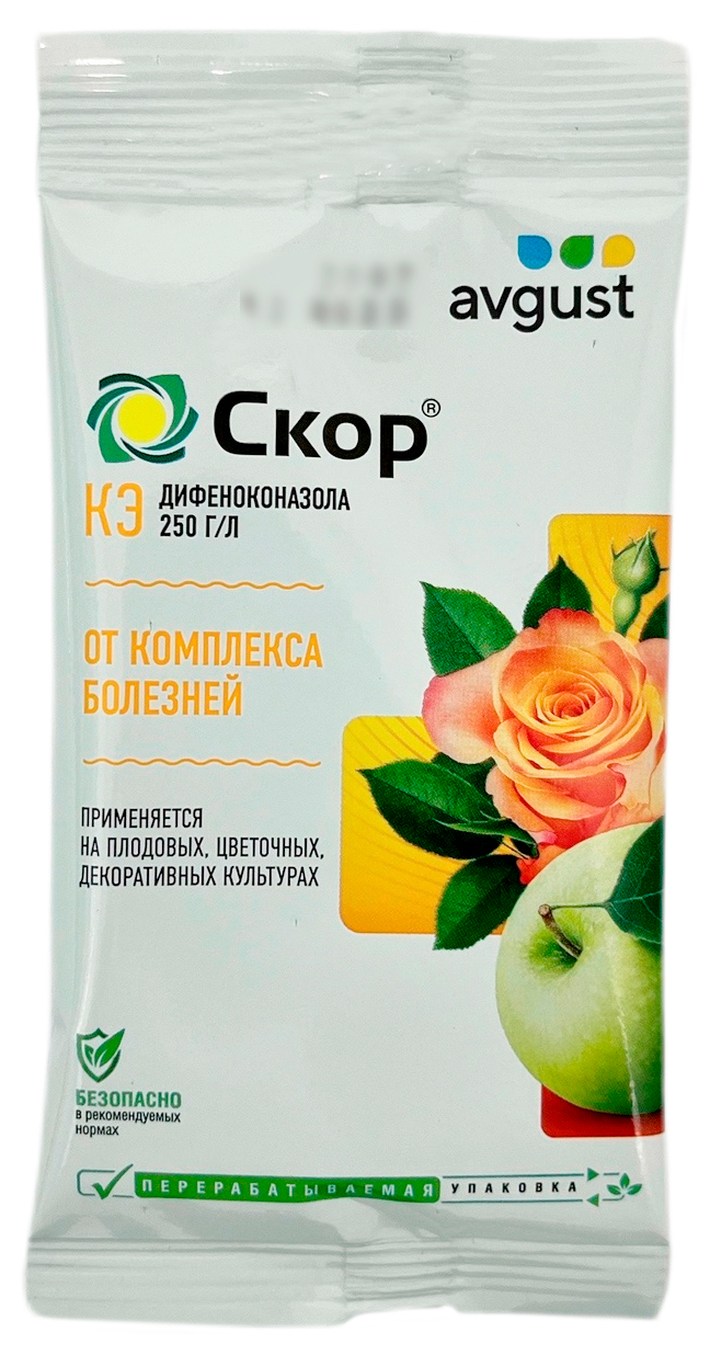 Скор Август от комплекса болезнейСостав: концентрат эмульсии, 250 г/л дифеноконазола.