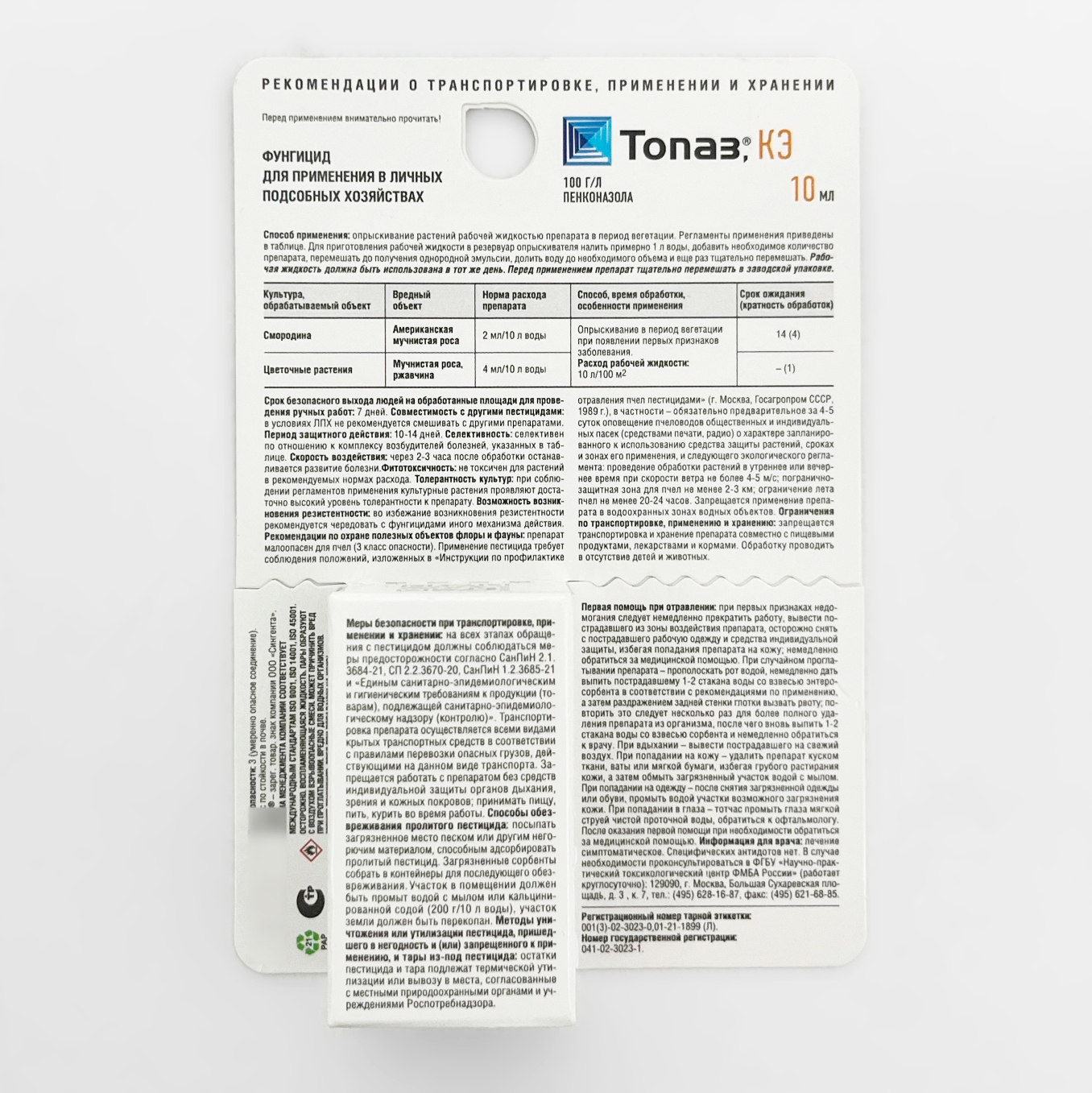 ТОПАЗ, КЭ 10млСостав: 100 г/л пенконазола.