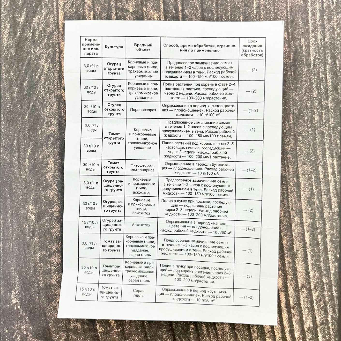 Препарат подавляет более 60 видов болезнетворных микробов. Попадая во влажную почву, споры «Триходермы» прорастают, выделяя природные антибиотики и обеззараживая почву вокруг. Подавляет фитопатогенные грибы в начальный период их развития, не нарушая роста растений.
