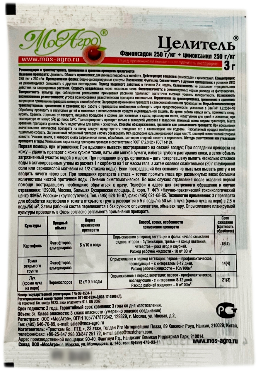 Целитель 3г МосАгроЛечение растений от фитофтороза, альтернариоза, пероноспороза.
