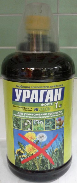 Ураган Форте» — универсальное средство в борьбе с любыми сорняками.УРАГАН® ФОРТЕ — высококонцентрированная препаративная форма. Прочно удерживается на листьях сорняков. Уничтожает самые злостные сорняки (осот, пырей, свинорой, вьюнок и др.) и древесно-кустарниковую растительность. Обработанные сорняки не отрастают вновь! Содержит уникальные поверхностно-активные вещества, обеспечивающие более быстрое проникновение и перераспределение действующего вещества в растении. УРАГАН® ФОРТЕ работает значительно быстрее, чем другие гербициды на основе глифосата.Характеристики
