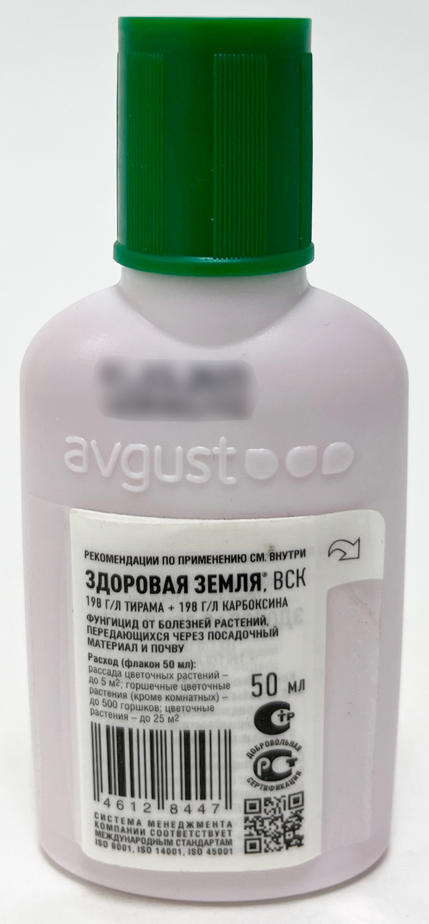 Здоровая земля - контактно-системный фунгицид для борьбы с болезнями растений, передающимися через посадочный материал и почву («черная ножка», ризоктониозная, питиозная и фузариозная гнили, вертициллезное увядание).