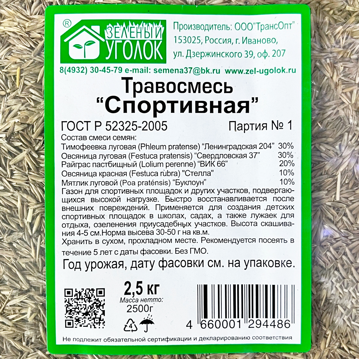 Травосмесь СПОРТИВНАЯ 2,5 кгСостав: