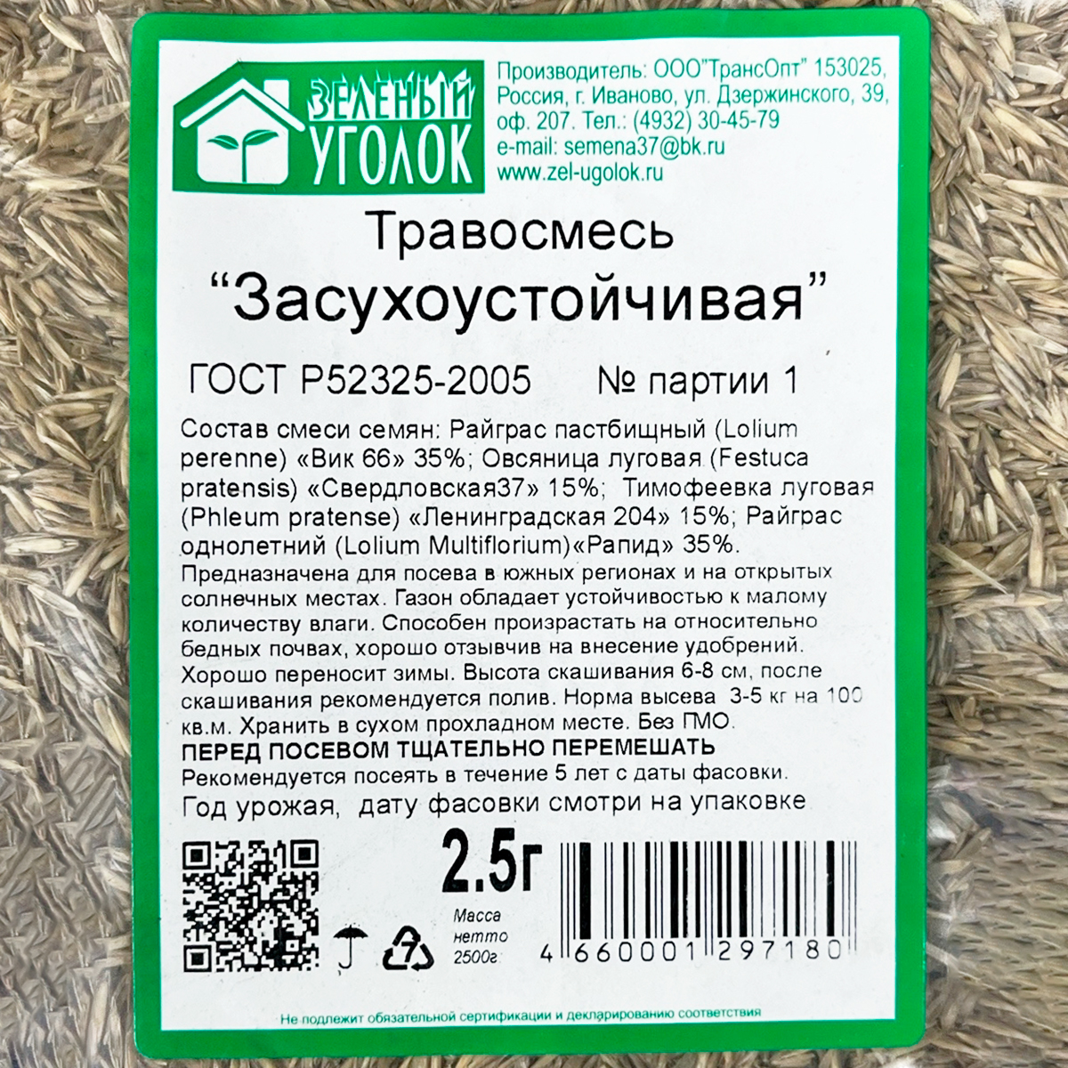 Травосмесь ЗАСУХОСТОЙЧИВАЯ 2,5 кгСостав: