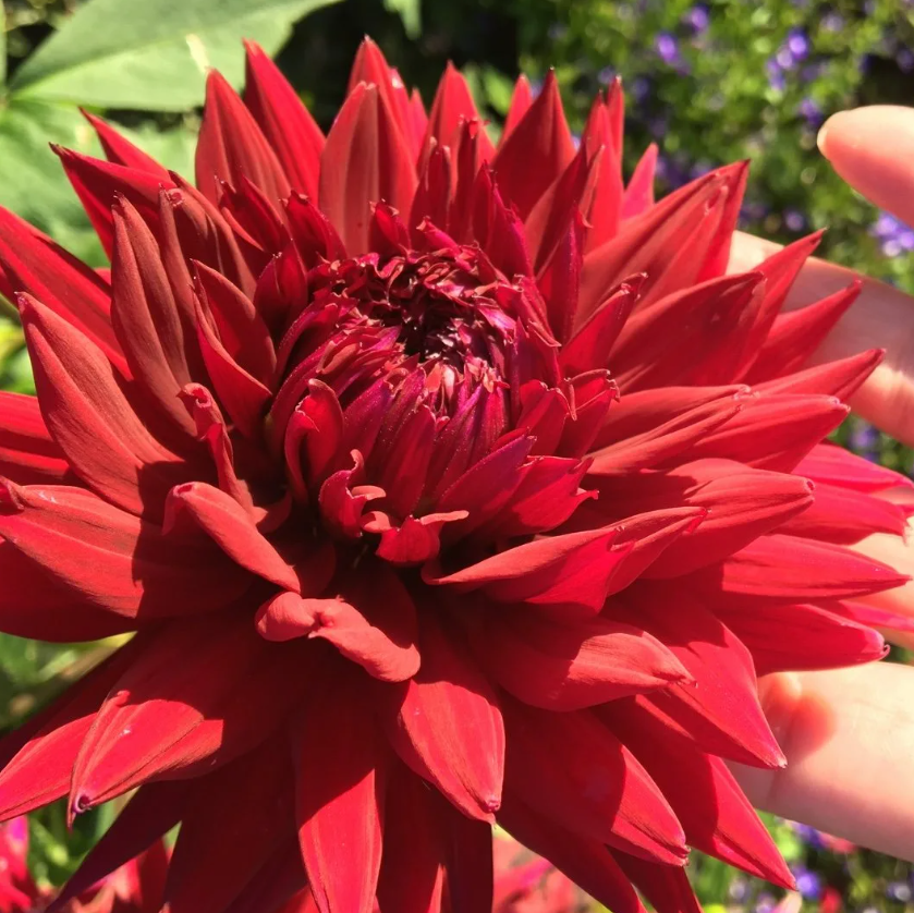 Растение обильно ветвится, формируя пышные кусты с обилием цветоносов. Цветок очень крупный, насыщенно-бордовый, центр почти черный. Листва бронзово-зеленая.Георгина - род красивоцветущих однолетних или многолетних растений. Представители данного рода применяются в качестве декоративных растений, с их помощью украшают сады, огороды, палисадники. Используют в миксбордерах и клумбах, в одиночных и групповых посадках на фоне газона. Это отличное растение для срезки. Букет из георгин долго сохраняет свежесть.