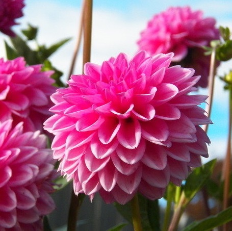 Георгина Sandra шаровидная. Высота георгины 100см. Цветок 10 см в диаметре. Цветет продолжительное время с июня до октября.Георгина - род растений семейства сложноцветные. Родина - Центральная Америка. Это многолетнее травянистое растение, неморозостойкое. Формирует куст из многочисленных прямостоячих стеблей. Стебли сочные, ветвистые, высотой от 30 до 250 см. Имеет крупные супротивные листья с пильчатым краем. Цветки георгины на побегах образуются, как правило, по три. Соцветие - корзинка различной формы, размера, окраски, простое или махровое. Цветет георгина с июля по сентябрь. Корневая система представлена корнеклубнем, содержащем большое количество питательных веществ. Продолжительность жизни одного корнеклубня - 4-6 лет. Существует огромное количество сортов георгины, которые объединены в группы по степени махровости, размеру и форме соцветия. Анемоновидная георгина получила свое название за сходство соцветий с цветками махровой анемоны. Выста куста таких георгин, как правило, не более 0,5-1,0 м