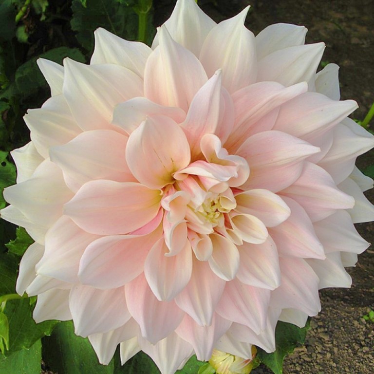 кремово-розовый с кремово-желтым центром, h-120см, Ø-25+см.Посадка: апрель-май (до пасадки хранить корневые шишки в прохладном месте). Георгины растут на хорошо окультуренной, легкой по механическому составу почве. Посадочный материал обычно высаживают в грунт, когда минует угроза заморозков (лучше всего после 2 мая). В ямы размером 30х30х30 см, насыпают заранее подготовленный субстрат и комплексное минеральное удобрение. В зависимости от высоты, расстояние между растениями в ряду — 60–90 см. После посадки растения обильно поливают. Уход за георгинами несложный — обильный полив, мульчирование опилками слоем 6–9 см, подкормки и удаление лишних побегов. Для получения более крупных соцветий обычно удаляют пазушные побеги и выщипывают боковые бутоны. В октябре клубни выкапывают, предварительно обрезав стебли выше корневой шейки на 10–15 см. Клубни очищают от земли и подсушивают. Стебли укорачивают до 3–5 см. Посадочный материал закладывают в ящик с торфом и хранят при температуре от +2 до +6 °С.