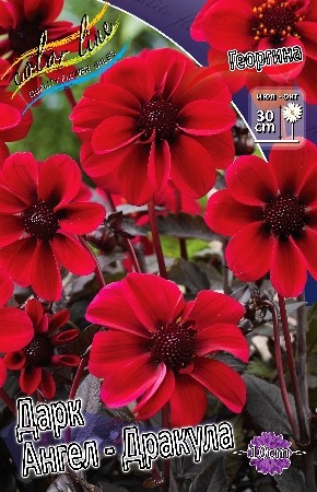 Георгина Дарк Ангел - Дракула - георгина группы Миньон, не требующая сложного ухода и достаточно неприхотлива к месту произрастания, с успехом вырастит даже начинающий цветовод-любитель.Очень популярный сорт, относится к карликовой разновидности, имеет простые, немахровые цветки. Куст компактный, пышный, стебли полые. Высота растения 30-40 см.