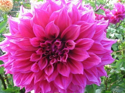 цвет «фуксия», h-80см, Ø-20см.Посадка: апрель-май (до пасадки хранить корневые шишки в прохладном месте). Георгины растут на хорошо окультуренной, легкой по механическому составу почве. Посадочный материал обычно высаживают в грунт, когда минует угроза заморозков (лучше всего после 2 мая). В ямы размером 30х30х30 см, насыпают заранее подготовленный субстрат и комплексное минеральное удобрение. В зависимости от высоты, расстояние между растениями в ряду — 60–90 см. После посадки растения обильно поливают. Уход за георгинами несложный — обильный полив, мульчирование опилками слоем 6–9 см, подкормки и удаление лишних побегов. Для получения более крупных соцветий обычно удаляют пазушные побеги и выщипывают боковые бутоны. В октябре клубни выкапывают, предварительно обрезав стебли выше корневой шейки на 10–15 см. Клубни очищают от земли и подсушивают. Стебли укорачивают до 3–5 см. Посадочный материал закладывают в ящик с торфом и хранят при температуре от +2 до +6 °С.