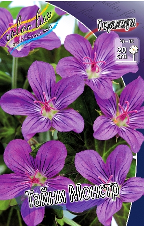 Гераниум Тайни Монстр относится к группе многолетников, высота растения 20 см, цветок: насыщенно-сиреневый с фиолетовыми прожилками. Листья округлые, 5-7-лопастные, буроватая листва. Время цветения в июне-августе. Схема посадки: 20*20 см. Размножение посевом или делением куста. Месторасположение: солнце или полутень. Почва умеренно плодородная, хорошо дренированная и богатая известью. Вредители и болезни: практически не повреждаются вредителями. Особенно оригинально она будет смотреться на фоне щебня или гальки, в альпинарии или на каменистой горке. Зимостоек без укрытия.Характеристики