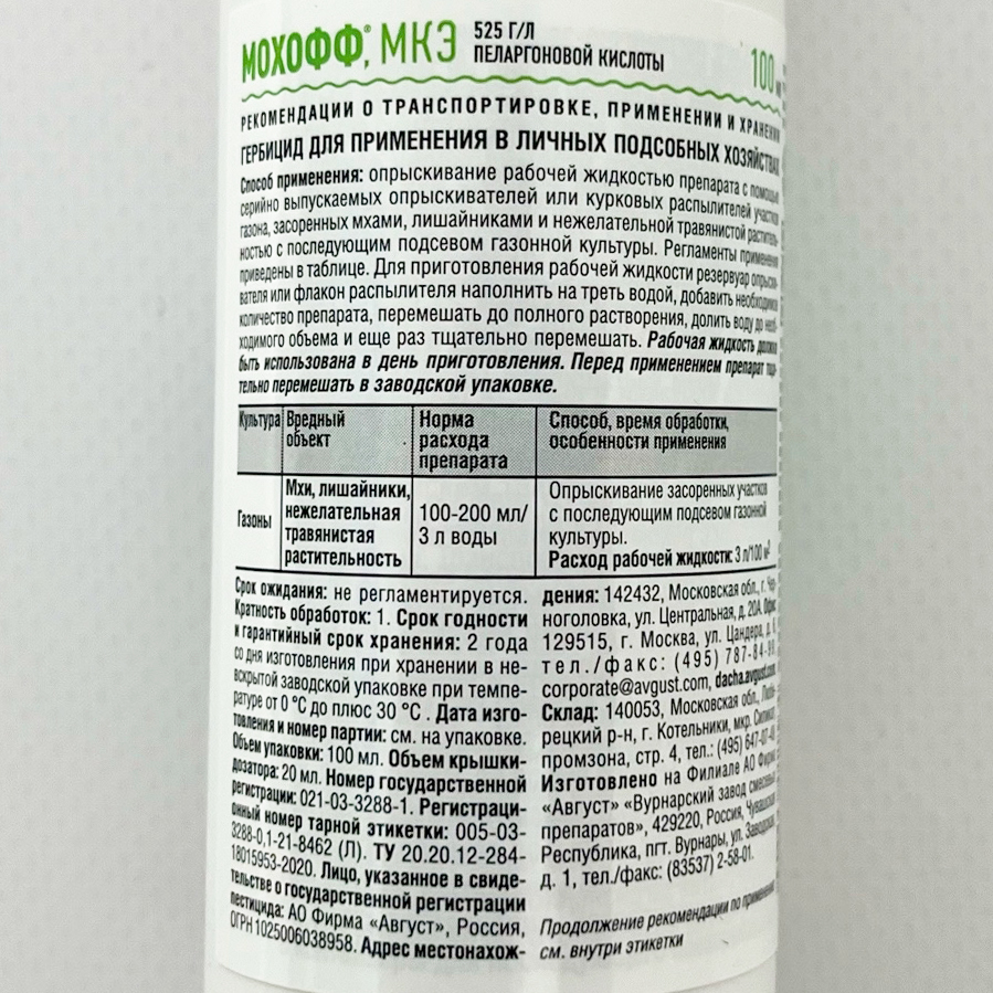 Мохофф Август 100млМохофф - биогербицид для борьбы со мхом и нежелательной травянистой растительностью.