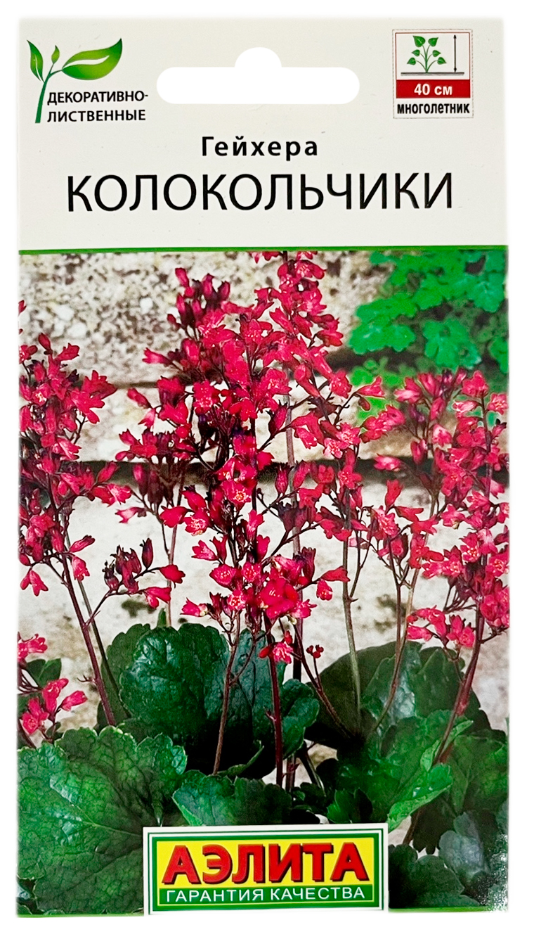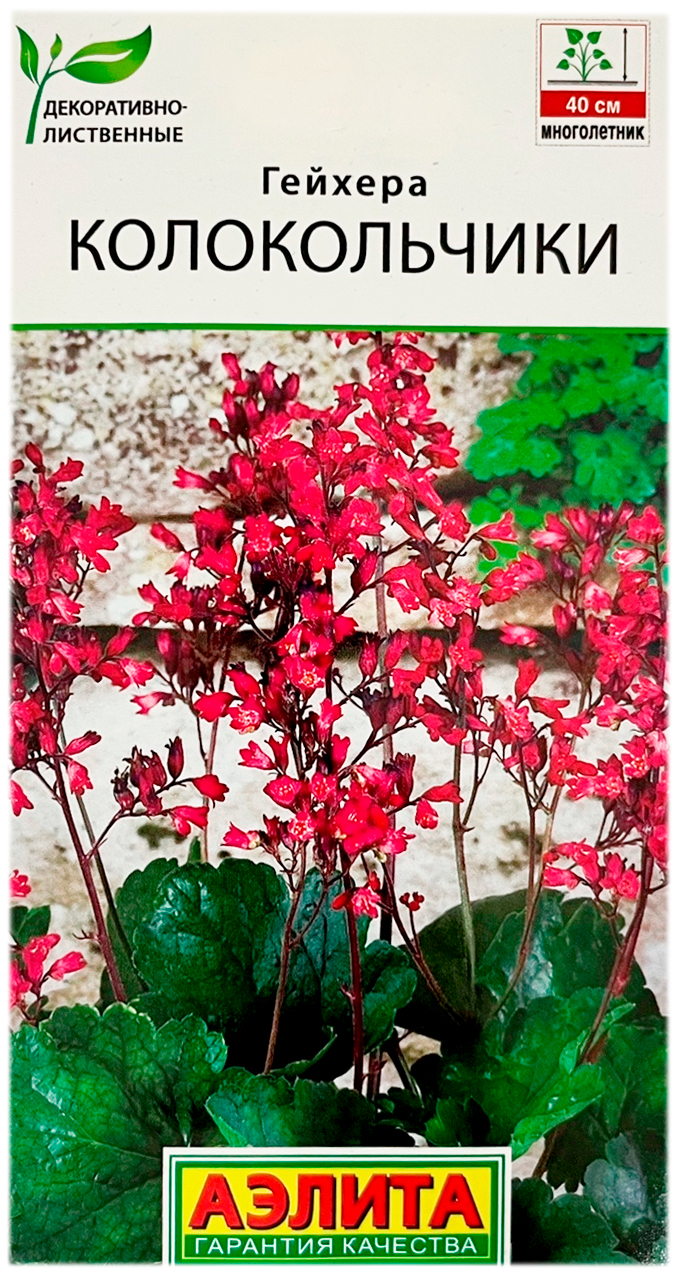 Гейхера колокольчики АЭЛИТАГейхера – многолетнее, травянистое растение, легко размножается семенами. Введено в культуру еще в 17 веке, но благодаря видовому разнообразию и современной селекции настоящее признание ведущих мировых цветоводов завоевало лишь в последние десятилетия. Красивые, не большие, декоративные листья собраны в плотную прикорневую розетку. Изящные соцветия из мелких цветков венчают длинные крепкие цветоносы (высота до 40 см). Сорт используется для создания бордюров, оформления приствольных кругов деревьев, водоема, альпийской горки, сада камней, для окантовки клумб.