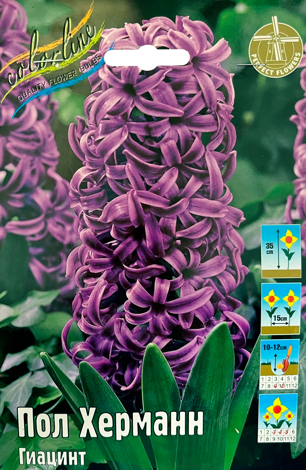 Гиацинт Пол ХерманнИспользуется для выращивания в садах и на клумбах. Высота растения до 25 см, при этом большую часть занимаем цветонос, на котором ровным слоем растут звездообразные цветы и распространяют тонкий, приятный аромат. Цветки насыщенно фиолетового цвета.