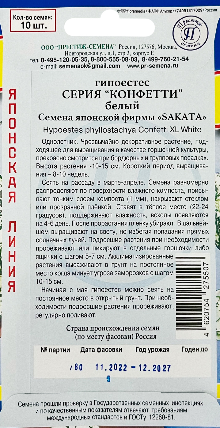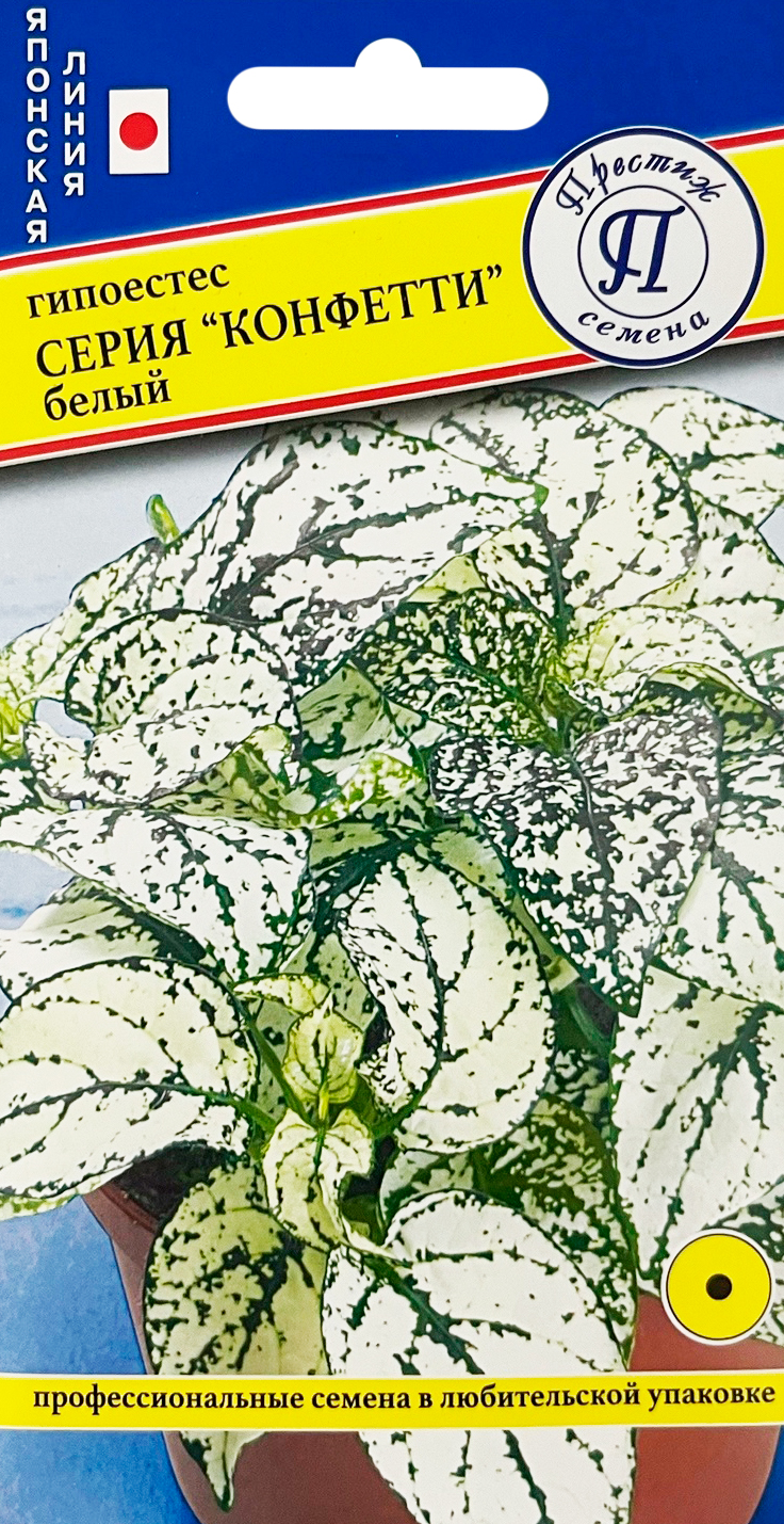 Гипоестес Конфетти БелыйПредназначены для выращивания необычного однолетника с высокодекоративными листьями, покрытыми белыми пятнами неправильной формы. Растение высотой до 15 см красиво смотрится при высаживании вдоль бордюров и при групповых посадках, может выращиваться в комнатных условиях. Посев на рассаду производят в марте-апреле, на постоянное место высаживают после заморозков. Возможен посев сразу в грунт — начиная с мая.