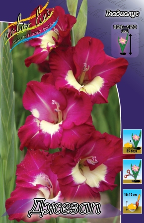 Гладиолус Джезап относится к группе "Супер" 10/12, высота растения 90-110 см, цветок:малиновый с белым пятном. Листья растения узкие и длинные с заостренным концом. Цветение с июля по сентябрь, 10-25 дней.Месторасположение: солнечные, защищенные от ветра участки. Схема посадки 10-15 см. Время посадки - март-начало мая (по окончании весенних заморозков).