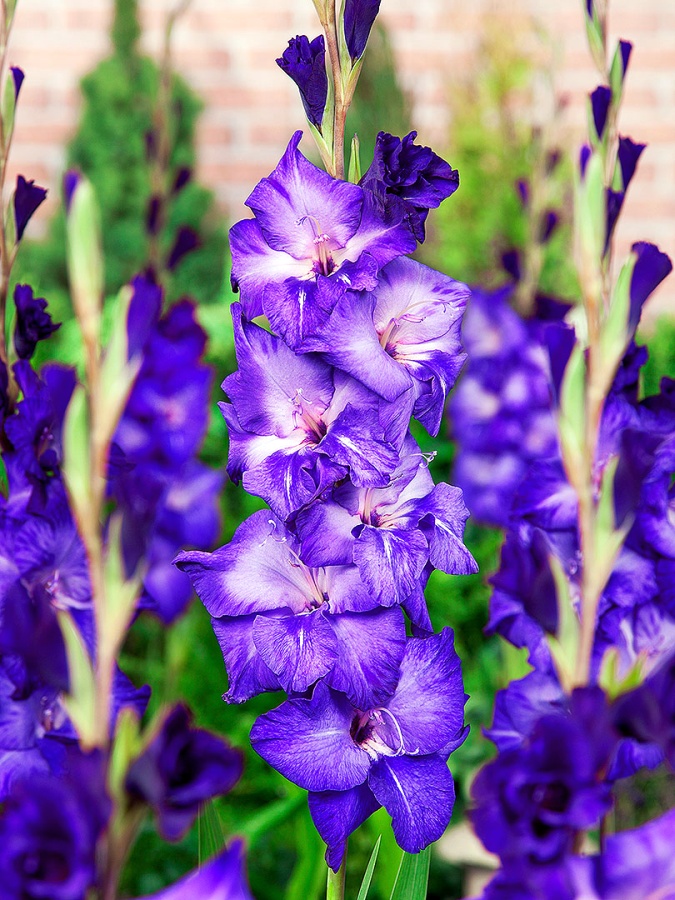 Период цветения гладиолуса Grapevine (Грейпвайн) приходится на июль-сентябрь. Восхитительные цветы насыщенно сине-фиолетового оттенка с белыми штрихами по лепесткам диаметром. Продолжительность цветения 2-4 недели. Высота гладиолуса GRAPEVINE достигает 150 см, рекомендуется опора. Стебель прочный с темно зелеными прикорневыми листьями, которые обволакивают стебель, придавая ему большей прочности.Характеристики