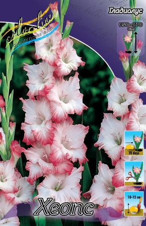Гладиолус Хеопс относится к группе крупноцветковый, размер луковицы 12/14, высота растения 90-110 см., цветок: гофрированный, розовая кайма, белая сердцевина. Листья растения узкие и длинные с заостренным концом. Цветение с июля по сентябрь, 10-25 дней. Месторасположение: солнечные, защищенные от ветра участки. Схема посадки 10-15 см. Время посадки - март-начало мая (по окончании весенних заморозков). Размножения: детками, образующимися вокруг клубнелуковиц. Почва - суглинистая или супесчаная, нейтральная или слабокислая, богатая гумусом.Характеристики