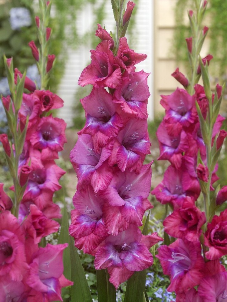 Крупноцветковые гладиолусы (Gladiolus largeflowering) – это как раз те самые, роскошные гладиолусы, которые мы привыкли видеть в наших садах и букетах на первое сентября. Это растения высотой от 100 до 150 см, с цветками треугольной формы диаметром 10—18 см и высотой соцветия 40—50 см. Цветки могут быть самой разнообразной окраски. Самое подходящее место для крупноцветковых гладиолусов – большой парадный миксбордер.Высота гладиолуса Люмьер (Gladiolus Lumierre) – 100-120 см.