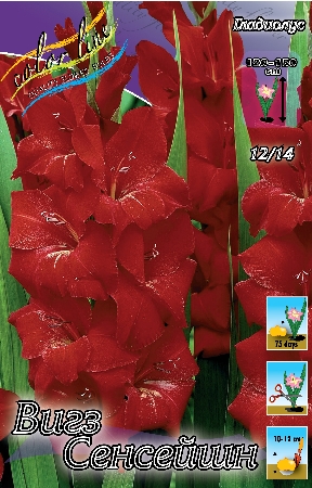 Гладиолус Вигз СенсейшнГладиолус Вигз Сенсейшн относится к группе крупноцветковый, размер луковицы 12/14, высота растения 90-110 см. Цветок: бархатно-красный. Листья растения узкие и длинные с заостренным концом. Цветение с июля по сентябрь, 10-25 дней. Месторасположение: солнечные, защищенные от ветра участки. Схема посадки 10-15 см. Размножение: детками, образующимися вокруг клубнелуковиц. Почва — суглинистая или супесчаная, нейтральная или слабокислая, богатая гумусом. Зимовка: луковички вынимаются, слегка просушиваются и сохраняются в течении зимы. Из вредителей для гладиолуса представляют опасность гладиолусовый трипс и корневой луковичный клещ.