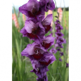 фиолетовый с темно-бордовыми мазкамиКрупноцветковые гладиолусы — это высокорослые эффектные растения с крупными, пышными цветками разнообразных расцветок. Они предпочитают солнечное расположение на хорошо дренируемых плодородных почвах. Время посадки — март-начало мая ( по окончании весенних заморозков). в сентябре — октябре клубнелуковицы выкапывают и хранят в прохладном месте до весны.