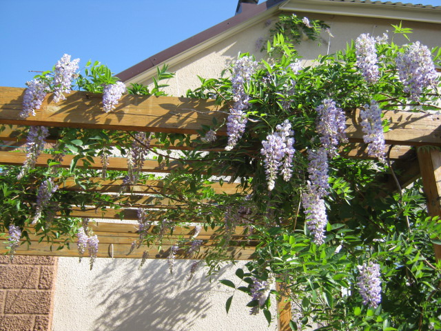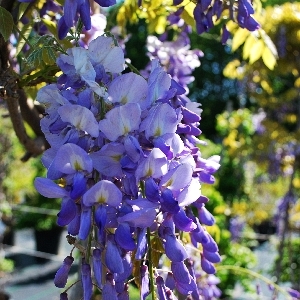 Глициния макростахия Блю Мун Wisteria macrostachya Blue Moon Морозостойкая глициния. Цветет с начала июня и со второй половины лета до сентября. Цветы крупные 2.4-2.8см, ароматные, лавандово-синие со светло желтым горлом; собранны в гирлянды длинной от 15 до 30см.Характеристики