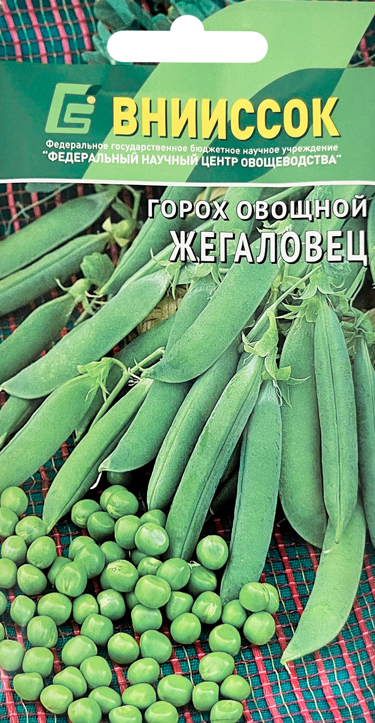 Горох ЖегаловецСреднеспелый сорт, от полных всходов до начала технической спелости зелёного горошка 52-59 суток. Сорт дружносозревающий. Растение средней длины (85-105 см). Бобы изогнутые с острой верхушкой, длиной 8-10 см, в бобе 8-10 семян, в технической спелости бобы и горошек зелёные. Вкусовые качества хорошие и отличные. Семена морщинистые, среднего размера. Урожайность зелёного горошка 0,7-0,8 кг/м2. Схема посева 15×7 см.