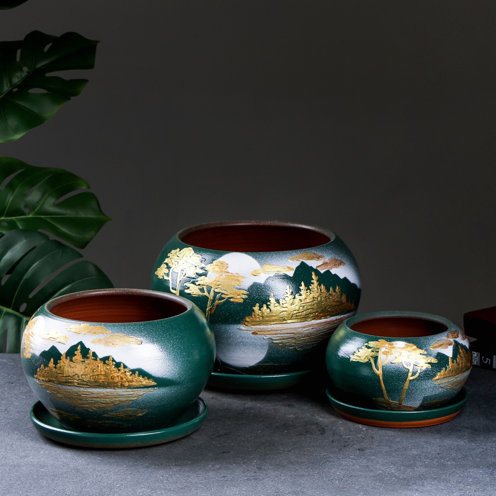 Горшок для цветов Золотые сосны средний керамика Кунгур