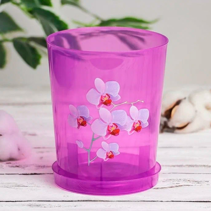 Горшок для Орхидеи 1,2л фиоллетовый М7543Данный цветочный горшок идеально подходит для выращивания изящной орхидеи дома или в офисе. Ведь для роста и цветения этой капризной красавицы должны быть созданы оптимальные условия. Прозрачные стенки горшка пропускают естественный свет. Благодаря дренажным отверстиям и глубокому поддону корни растения не переувлажняются, как следствие не загнивают. Простой и лаконичный дизайн горшка позволяет ему легко вписаться в любой интерьер, не затмевая красоту цветка.
