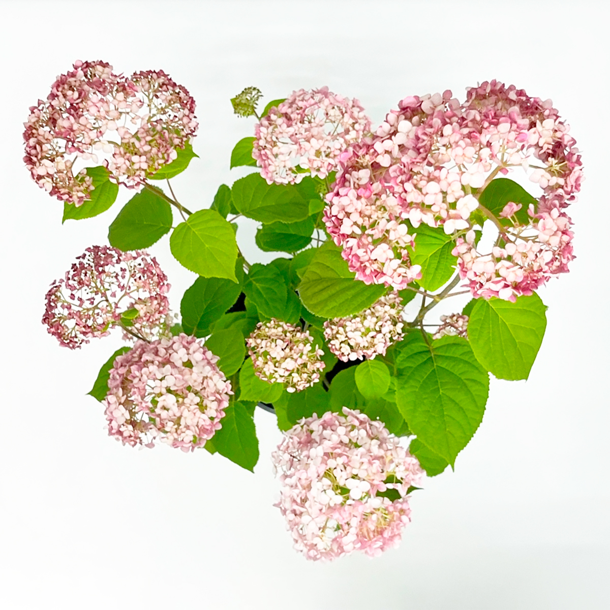 Гортензия древовидная Кандибелле БаблгамКомпактный сорт, вырастает до 110 см в высоту. Крона округлая, соцветия плотные и имеют потрясающей цвет: от насыщенно белого до тёмно розового. Сорт с привлекательной листвой, имеющей специфический мятный оттенок цвета. Хорошо переносит засуху и жару. Морозостойкая.