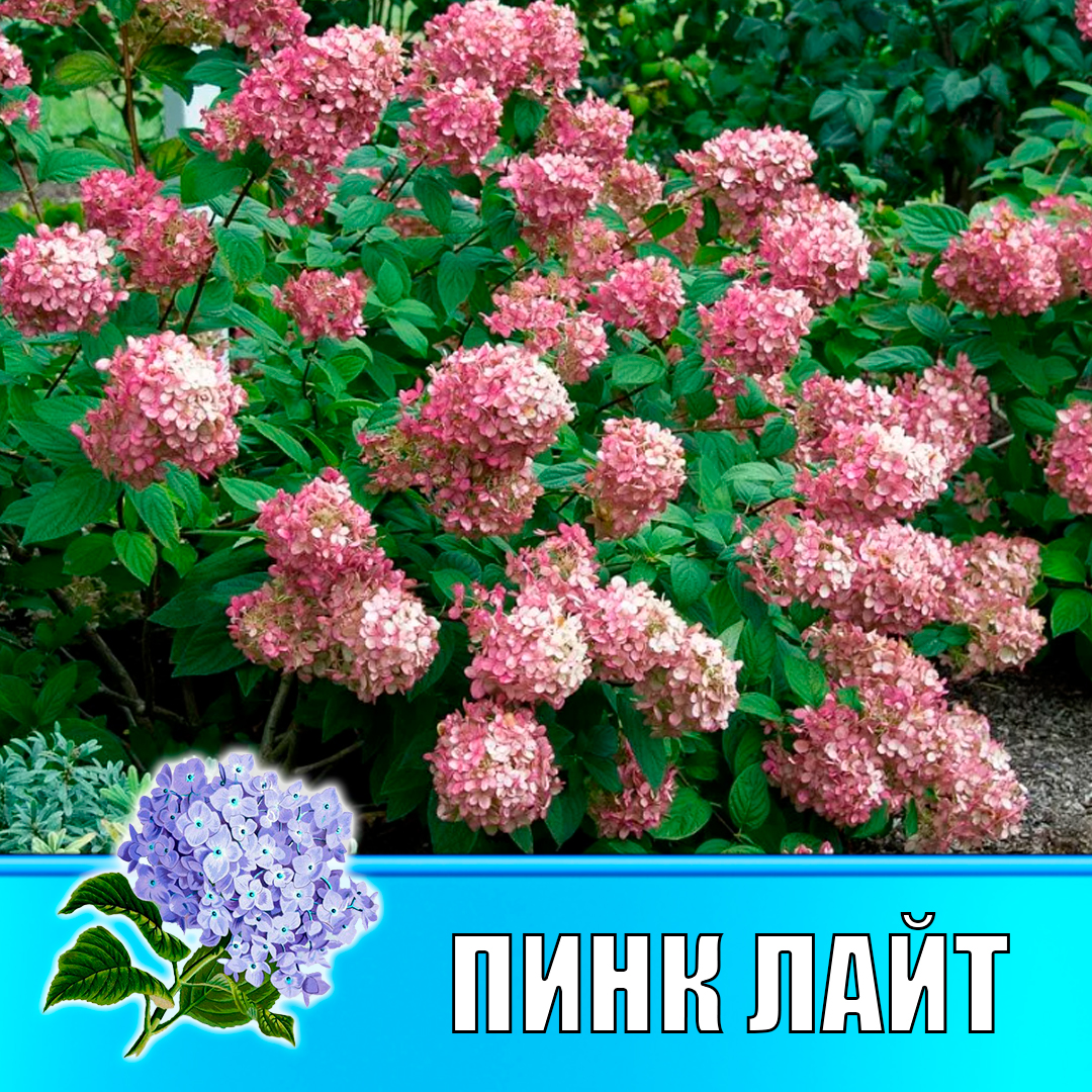 Гортензия метельчатая Гарден лайт Пинк Лайт (Р12)Саженец Гортензия метельчатая Гарденлайт Пинк Лайт — цветущее многолетнее растение. Для высадки стоит выбирать солнечные или затененные участки. Хорошо смотрится на клумбах самостоятельно или в окружении низкорослых зеленых растений. По мере взросления образует пышный куст со множеством цветоносов. Листья овальные, с резным краем, зеленого цвета. Крона раскидистая.