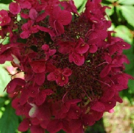 Гортензия метельчатая Вимс Ред Hydrangea paniculata Wim’s Red Сорт-мировая сенсация! Очень крупное соцветие 35см!, с ароматом мёда. Окрас сначала белый, потом розовеет и становится рубиново-красным. Период цветения более длительный с июня по октябрьХарактеристики