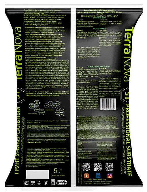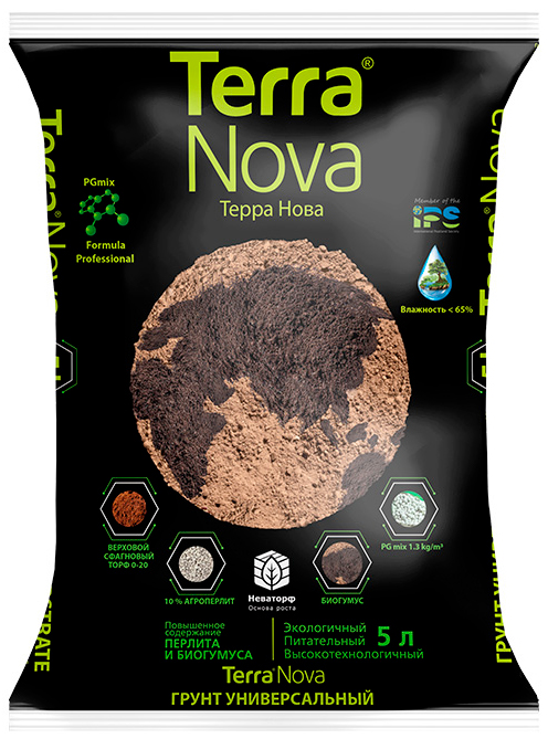 ”Питательный грунт Terra Nova® (Новая земля) - усовершенствованная формула Terra Vita c большим содержанием биогумуса и агроперлита.
