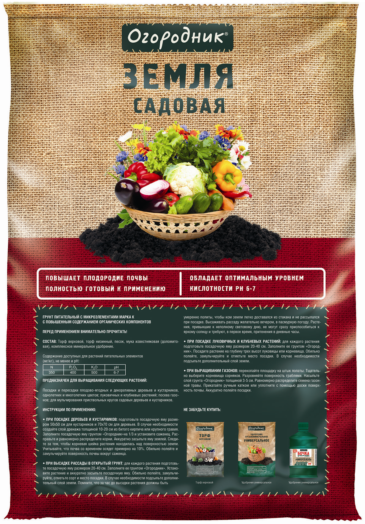 Предназначен для выращивания следующих растений: Посадки и пересадки плодово-ягодных и декоративных деревьев и кустарников, однолетних и многолетних цветов; луковичных и клубневых растений; посева газонов; для мульчирования приствольных кругов садовых деревьев и кустарников.