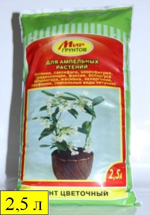 Грунт для Ампельный растений 2,5лПитательный грунт для выращивая ампельных растений (бегонии, фуксии, жасмина и др.).