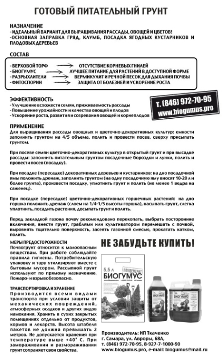--Грунт Ткаченко 20л ЭКОгрунтСеменаПосадочный материалГоршки, кашпо, ящики для рассадыУкрашения и дизайн дачного участкаГрунтУдобрения, стимуляторыЯдохимикаты (пестициды)От комаров тараканов муравьев мышей крыс кротовИнструмент, оборудование садовоеТовары для животныхКухня садоводаФлористические материалыЛитератураФитолампыПоливочное оборудование