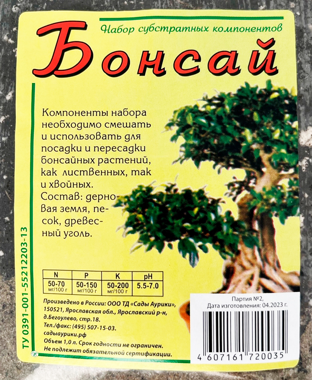 --Субстрат Сады Аурики Бонсай 1лСеменаПосадочный материалГоршки, кашпо, ящики для рассадыУкрашения и дизайн дачного участкаГрунтУдобрения, стимуляторыЯдохимикаты (пестициды)От комаров тараканов муравьев мышей крыс кротовИнструмент, оборудование садовоеТовары для животныхКухня садоводаФлористические материалыЛитератураФитолампыПоливочное оборудование