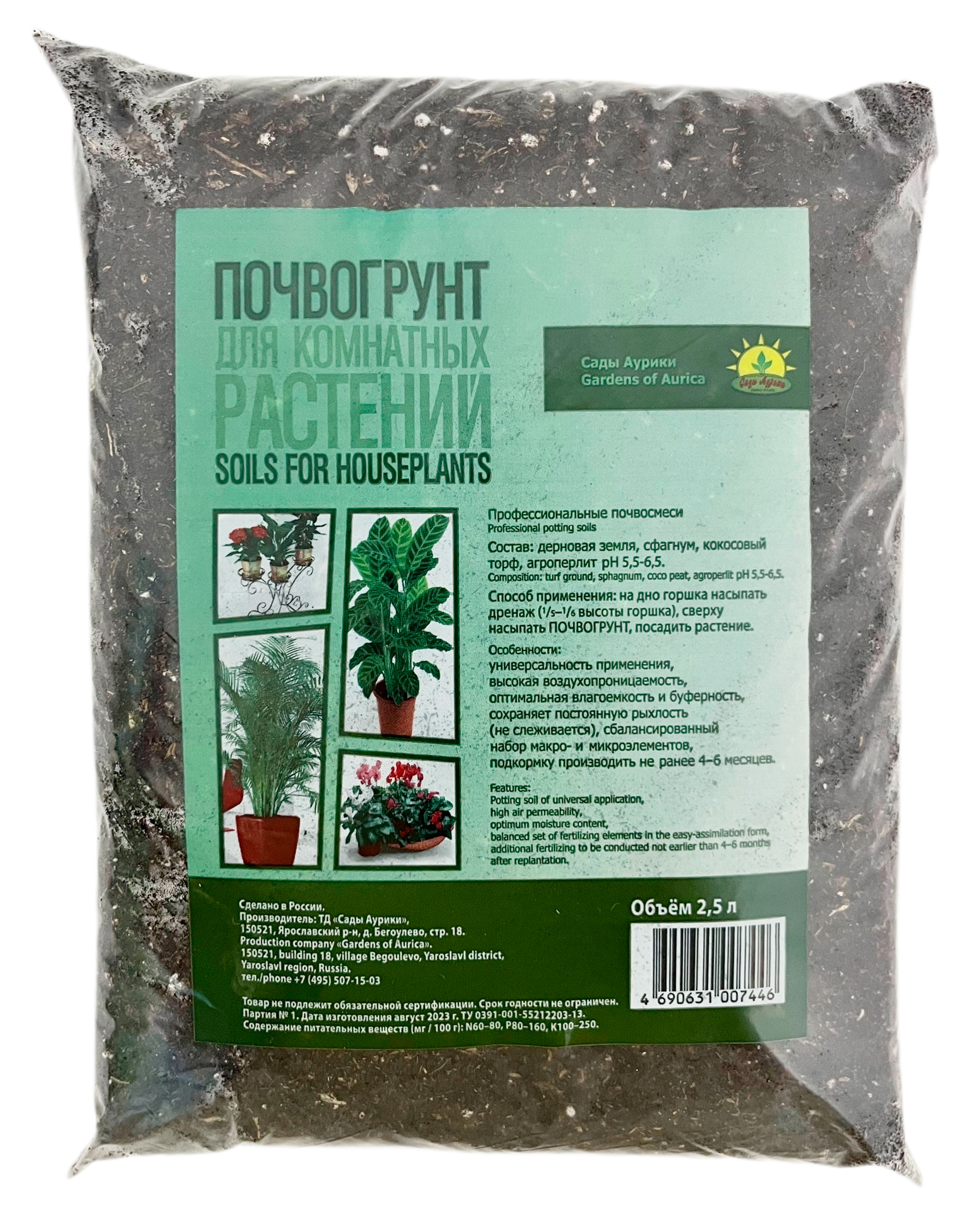 ПОЧВОГРУНТ для комнатных растений Сады Аурики 2,5л- профессиональные почвосмеси;