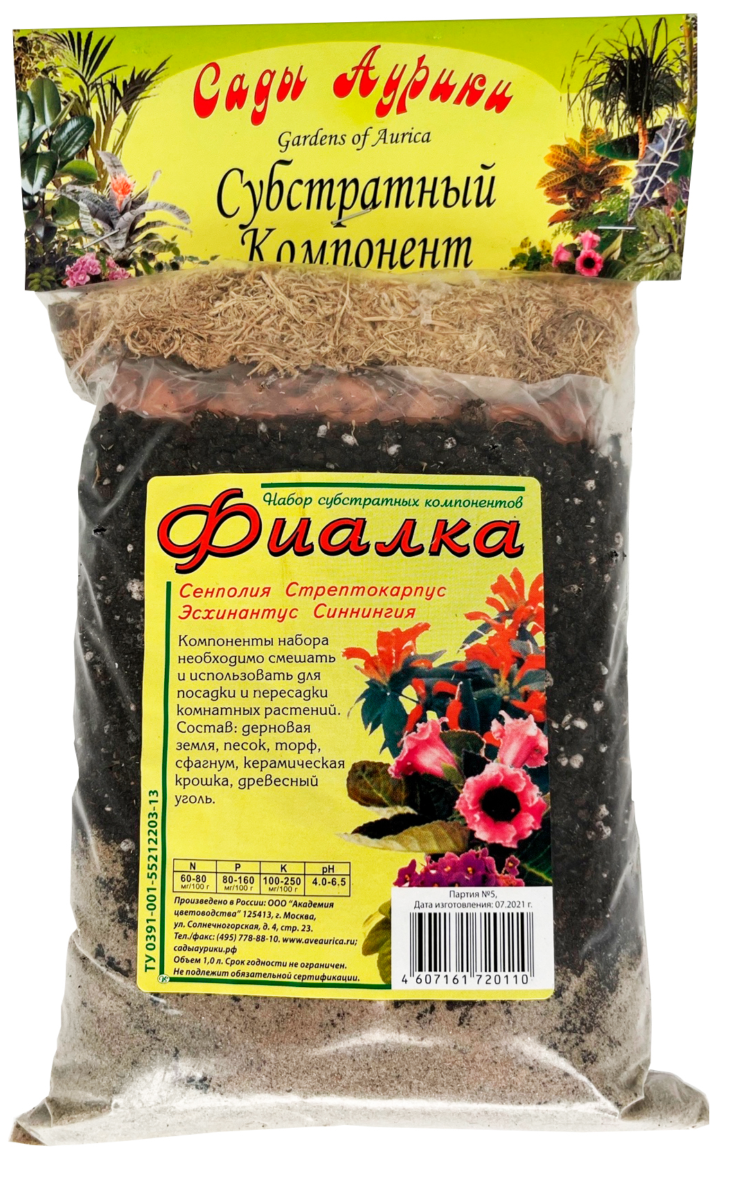 Субстрат Сады Аурики Фиалка 1л применяется для посадки и пересадки цветов семейства фиалковые.Обладает дренажными свойствами, улучшает структуру грунта, его воздухопроницаемость и способствует удержанию полезных веществ в грунте.